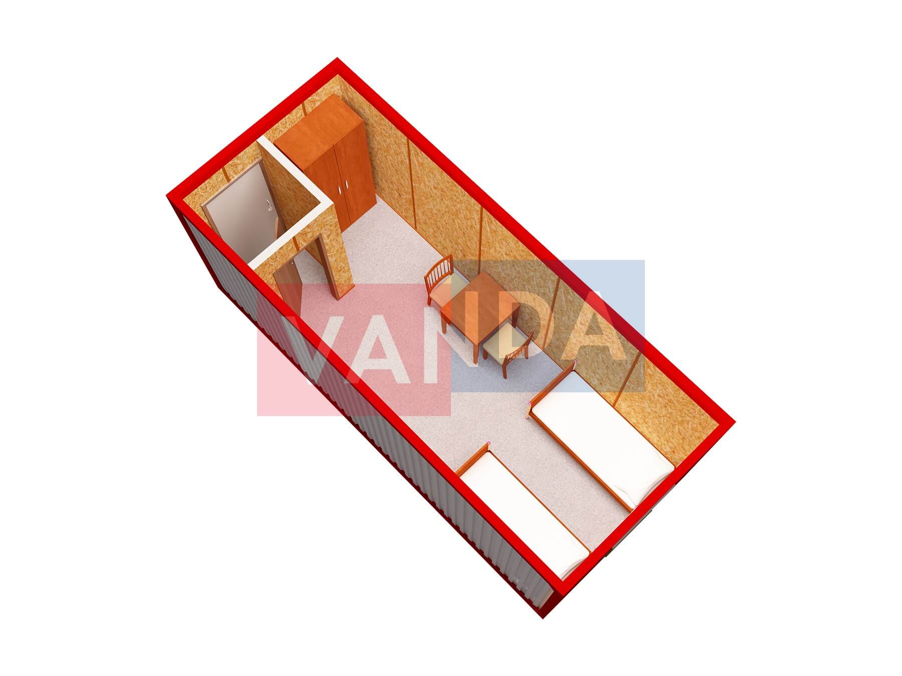 Металлическая бытовка с кухней в тамбуре 5,85 x 2,4 - Оргалит ДВП