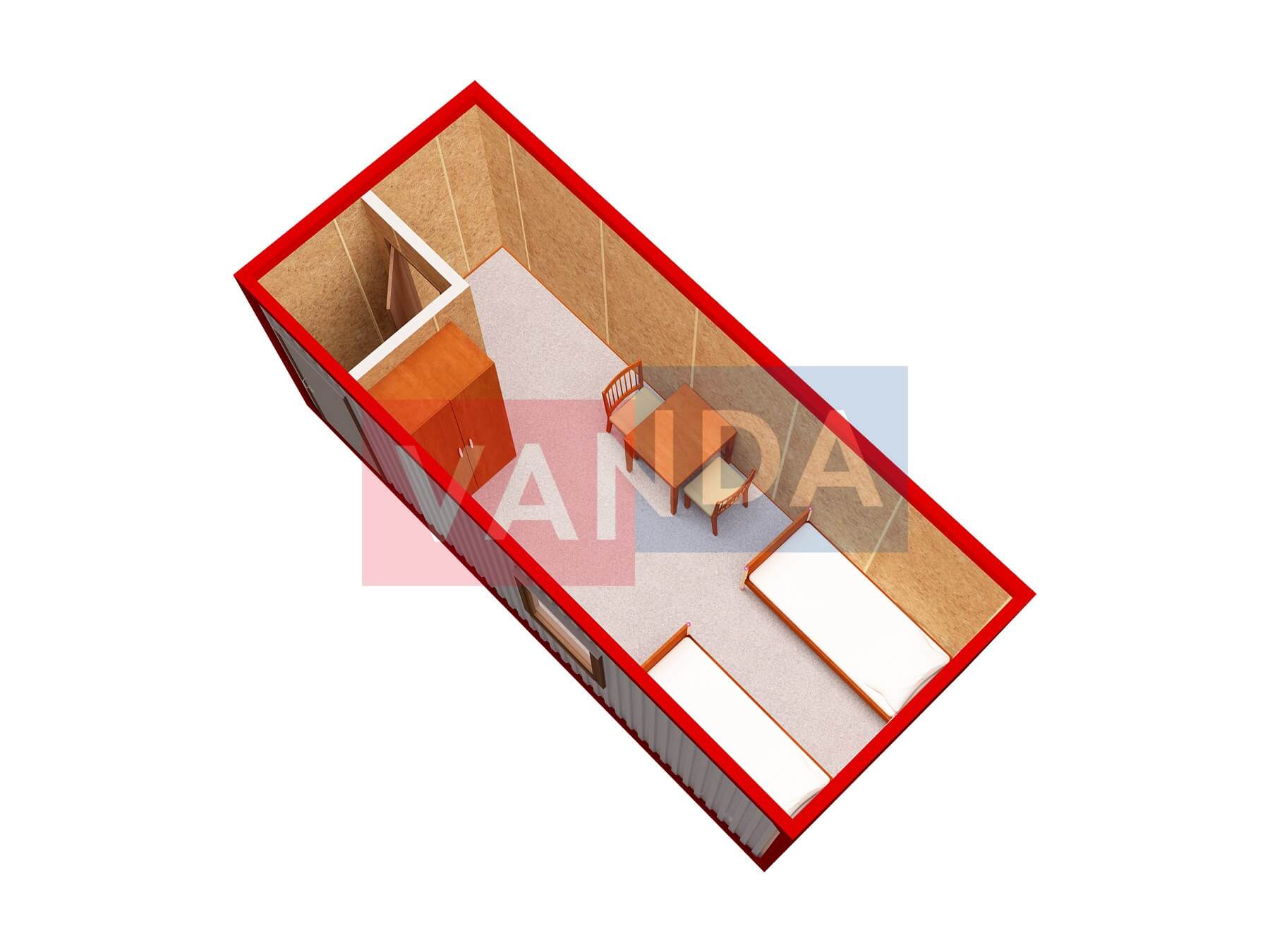 Металлическая бытовка без тамбура 5,85 x 2,4 - Вагонка ПВХ